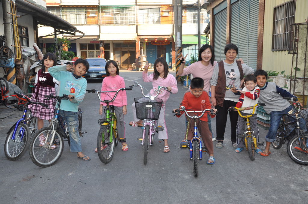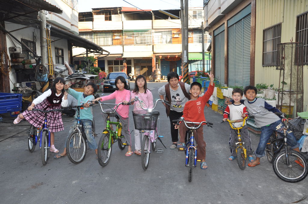 一行十幾個小朋友,大大小小的單車排排站,好壯觀。