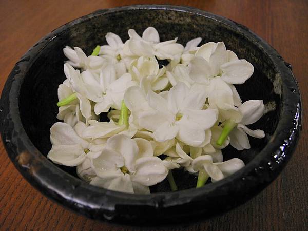 將這些香味四溢白白淨淨的茉莉花盛裝在裡面,